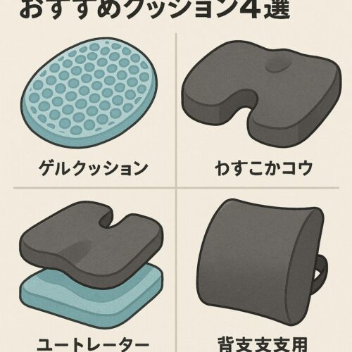 Illustration of 4 recommended cushions for people experiencing pain in their hips or lower back during long drives. ※当ページのリンクにはアフィリエィトリンクを含むPRが含まれております。 X Facebook はてブ LINE Pinterest コピー 2025.05.21 この記事は約0分で読めます。