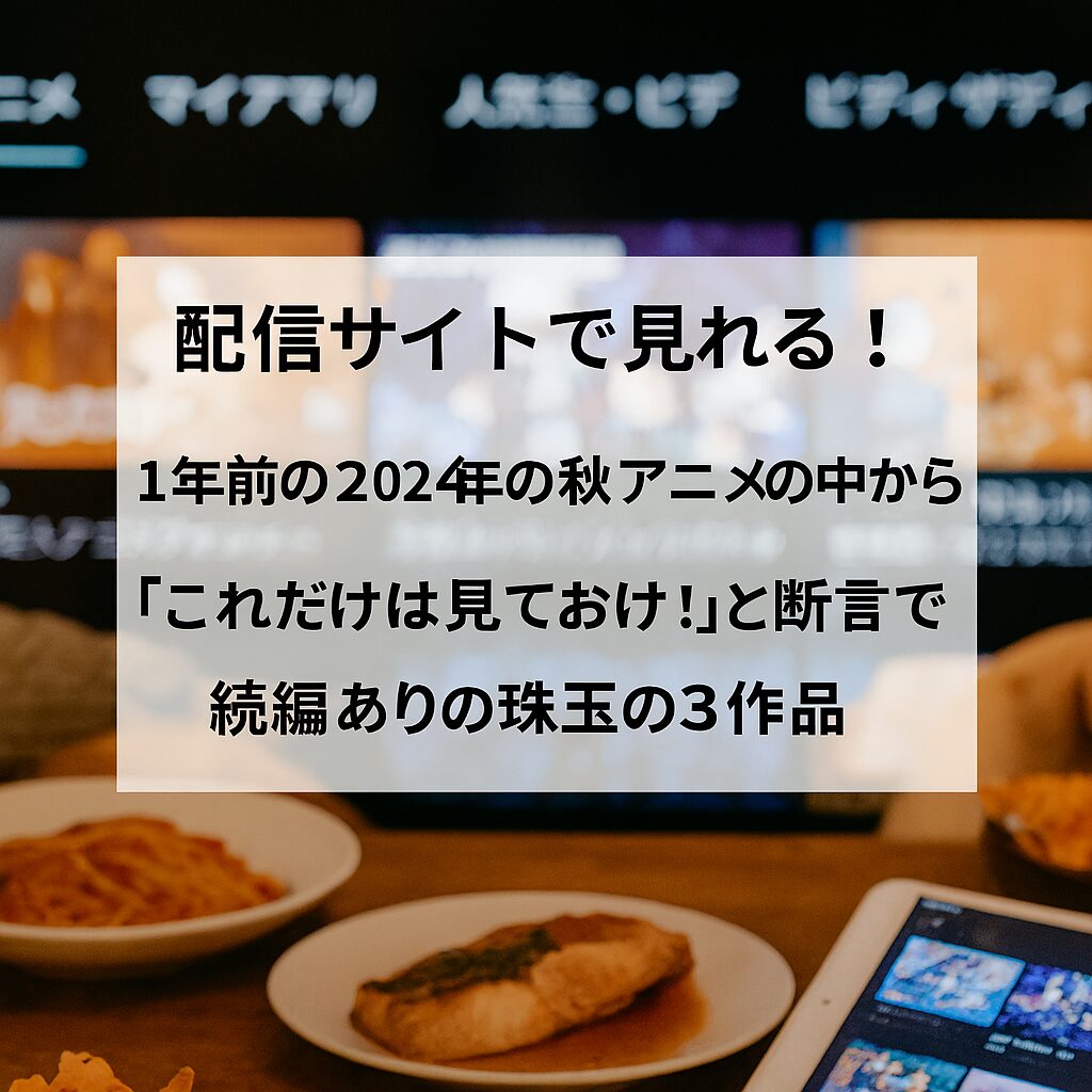 この記事では、そんなあなたのために、1年前の2024年の秋アニメの中から「これだけは見ておけ!」と断言できる珠玉の3作品を、ネタバレなしで厳選してご紹介します!